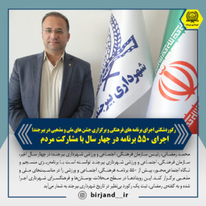 محمد رمضانی، رئیس سازمان فرهنگی، اجتماعی و ورزشی شهرداری بیرجند: در چهار سال اخیر، سازمان فرهنگی، اجتماعی و ورزشی شهرداری