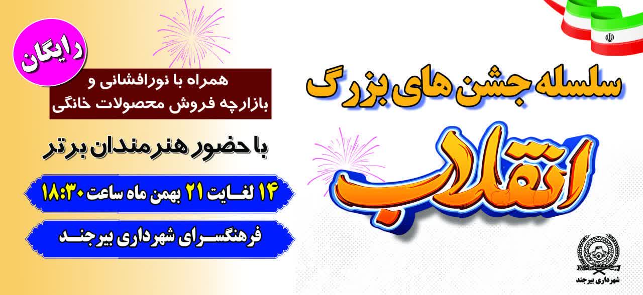 🔸️وی افزود: برگزاری سلسله جشنهای بزرگ انقلاب با برنامههای شاد و متنوع همچون ۴ سال گذشته از دیگر اقدامات شهرداری بیرجند در دهه مبارک فجر است که از ۱۴ لغایت ۲۱ بهمنماه به مدت ۸ شب از ساعت ۱۸/۳۰ به صورت رایگان با هدف گرامیداشت چهل و هفتمین سالگرد پیروزی انقلاب و ایجاد شور و نشاط اجتماعی در محل فرهنگسرای شهرداری برگزار خواهد شد.